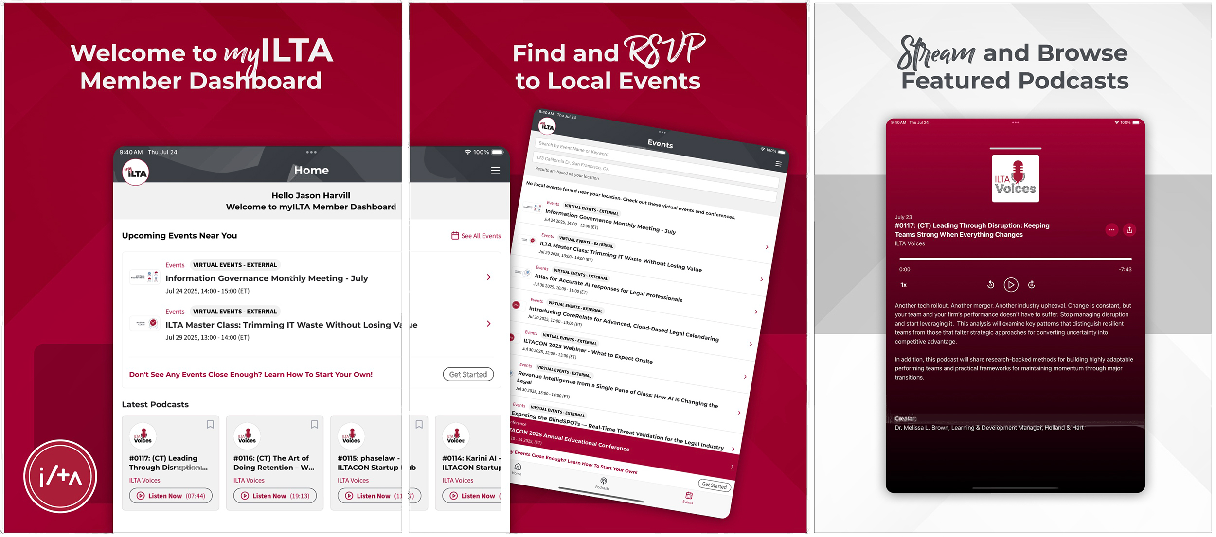 - Podcasts On-the-Go: Explore and listen to ILTA-created podcasts anytime, anywhere.