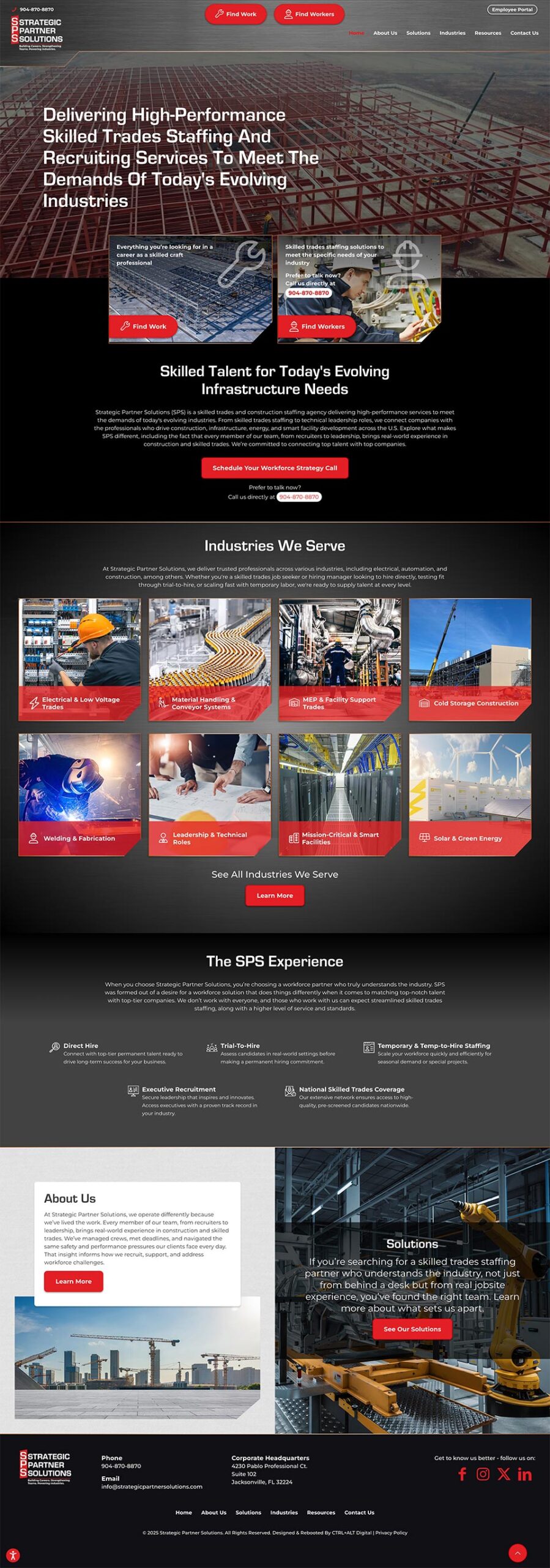 Strategic Partner Solutions (SPS) tapped CTRL+ALT Digital to develop a brand new website for their skilled trades recruiting company. We designed and developed a sleek, professional, responsive and informative website with prominent call-to-action buttons so potential employers and employees alike can easily find the information they need, including what differentiates SPS in the recruiting space and the many industries they serve. We’re proud of our relationship with SPS and this wonderful testimonial!